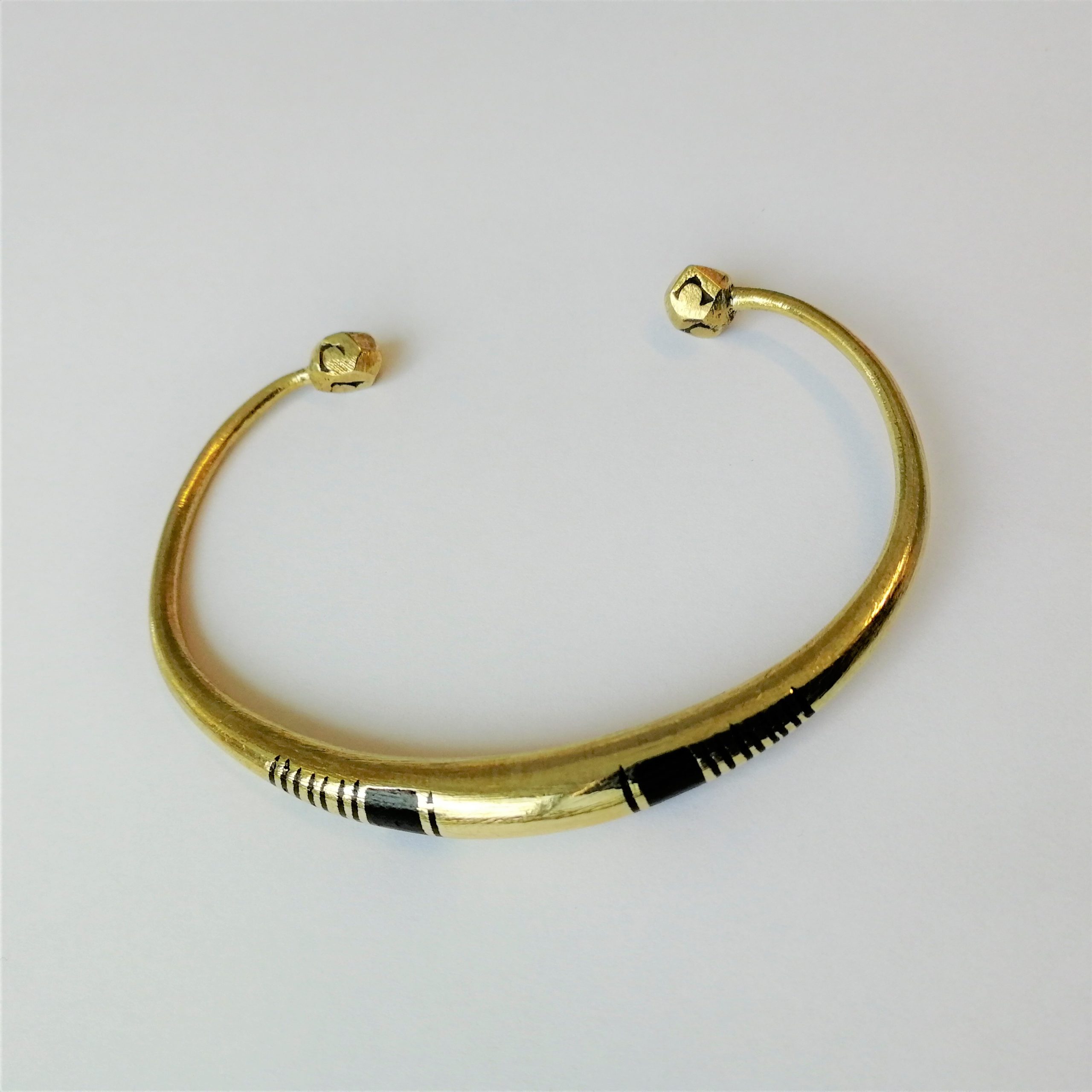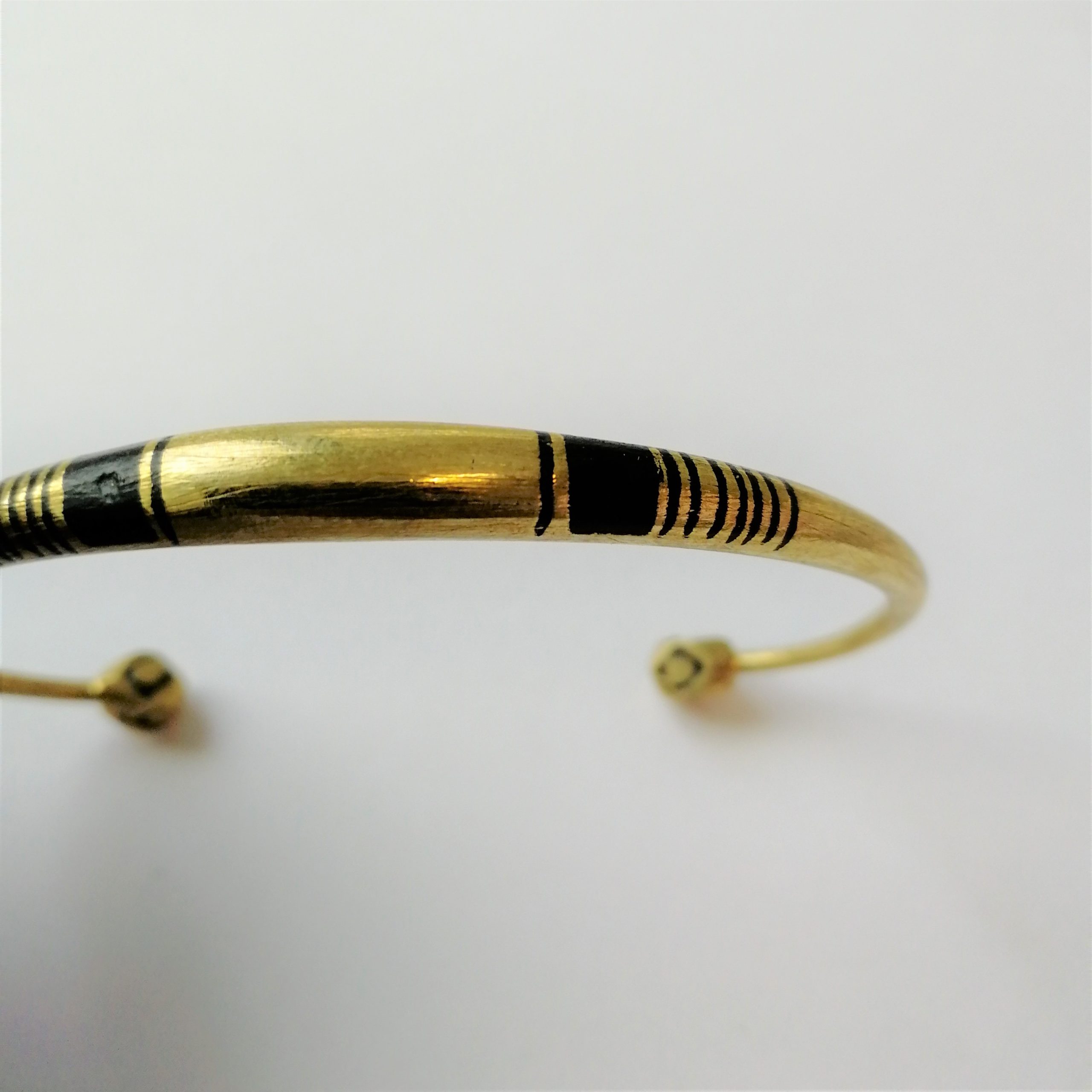 Bracelet jonc en bronze, lisse en forme arrondi, façonné à la main, décoration avec incrustation au bois d’ébène