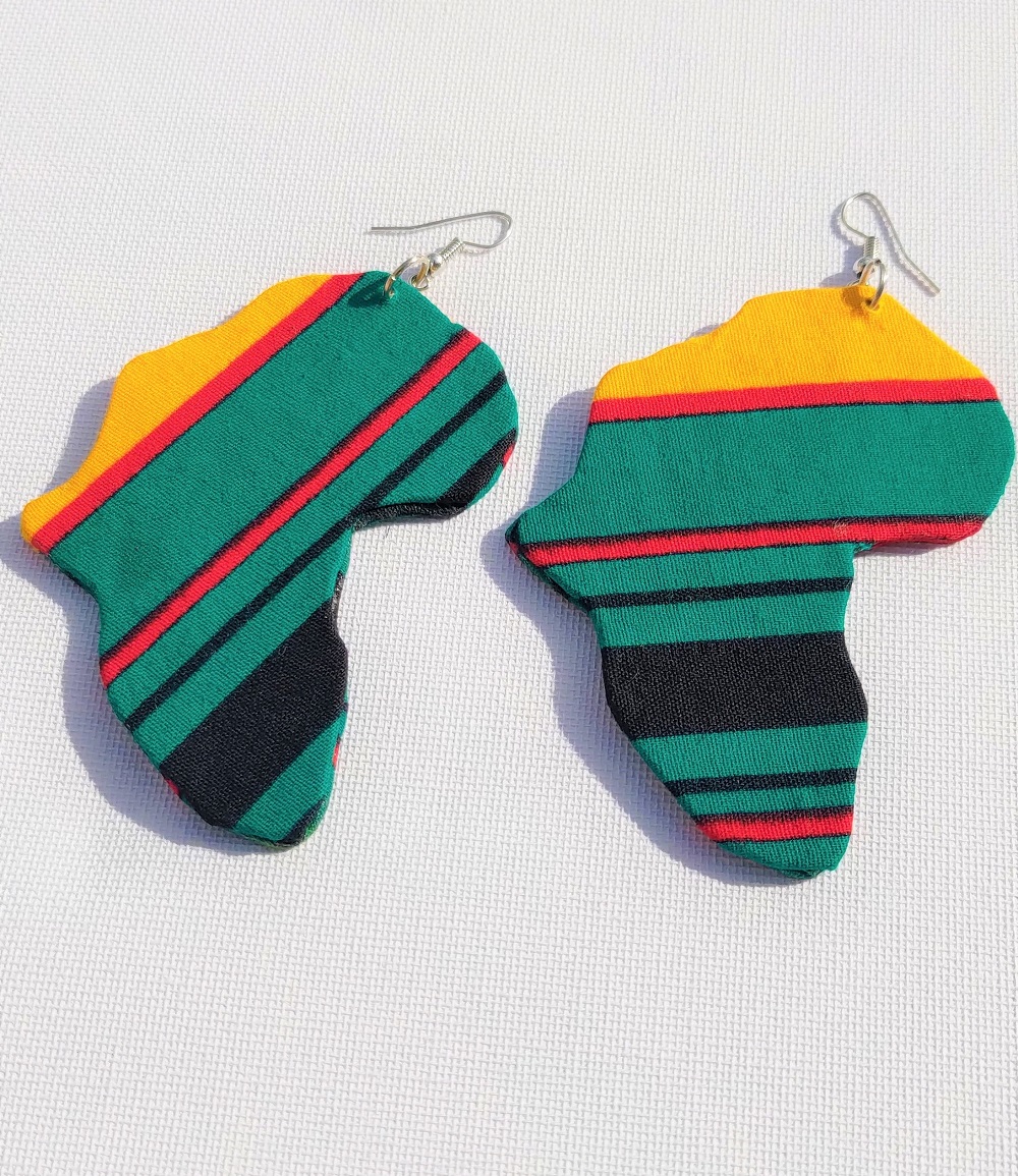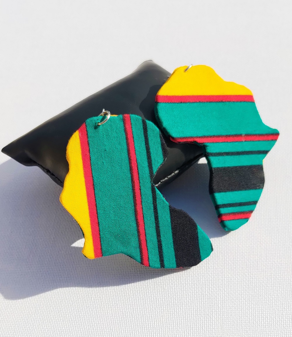 Nouveauté Kassaora!! Parez-vous de ces magnifiques Boucles d’oreilles en forme du continent Africain fait main, en motif Wax. Boucles d’oreilles légères, avec une couleur éclatante, soyez originaleà toutes les occasions