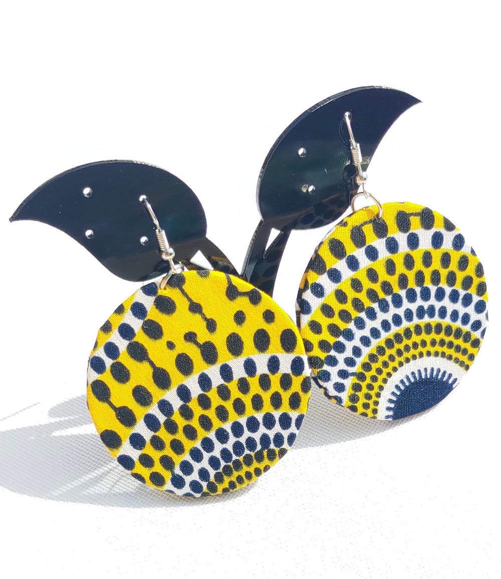Nouveauté Kassaora!! Parez-vous de ces magnifiques Boucles d’oreilles rond fait main, en motif Wax. Boucles d’oreilles légères, avec une couleur éclatante, soyez tendance à toutes les occasions