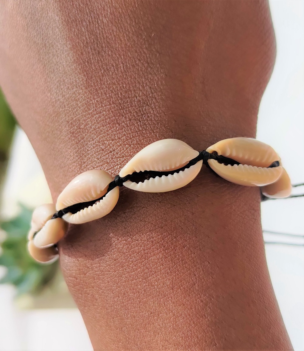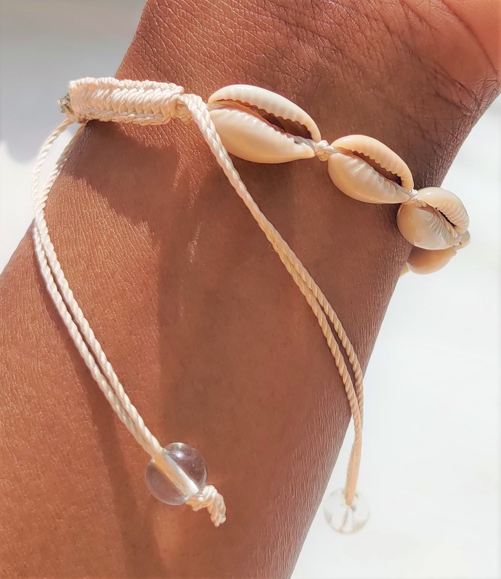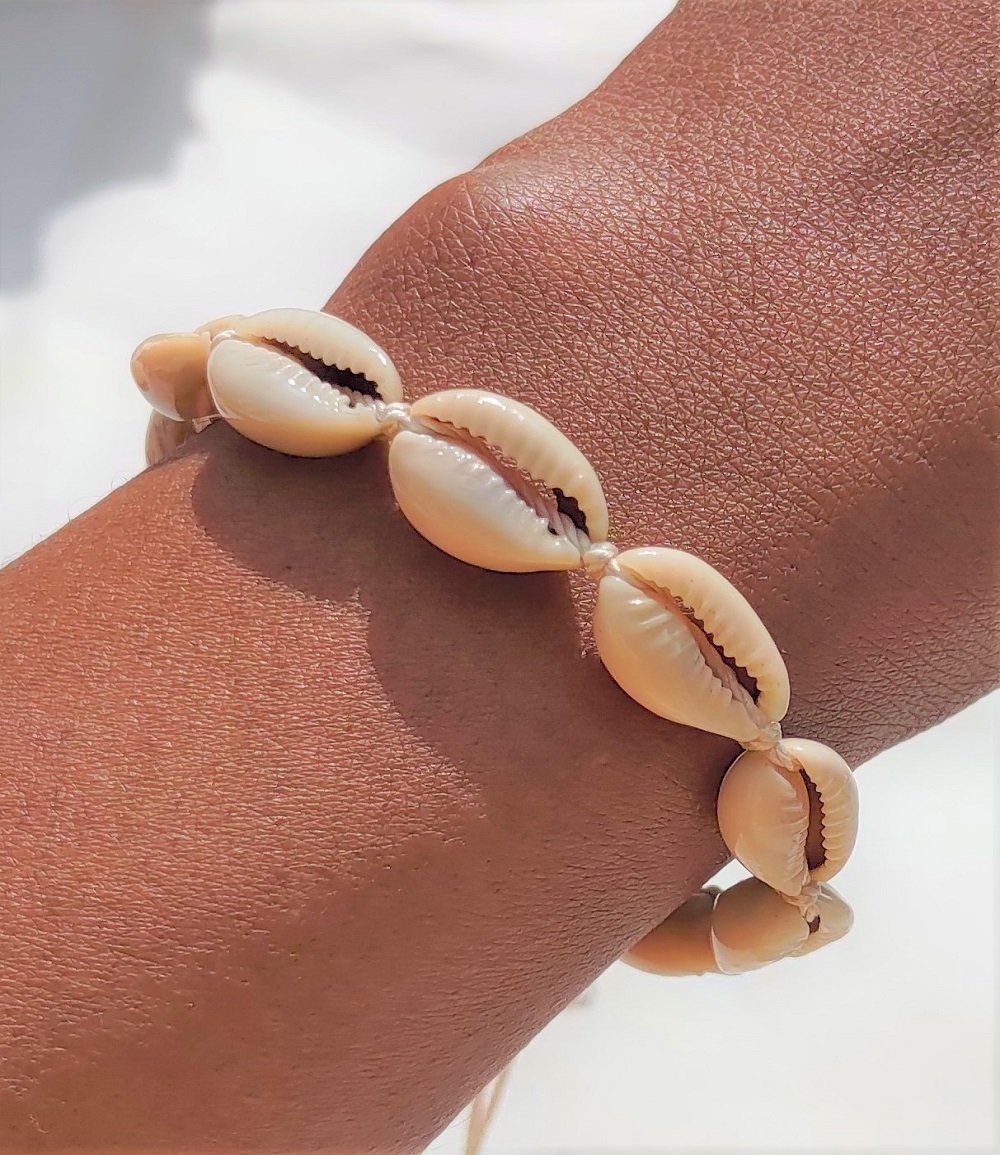Nouveauté Kassaora!! Bracelet en cauris, réalisé à la main avec du fil à crochet pour une solidité absolue.