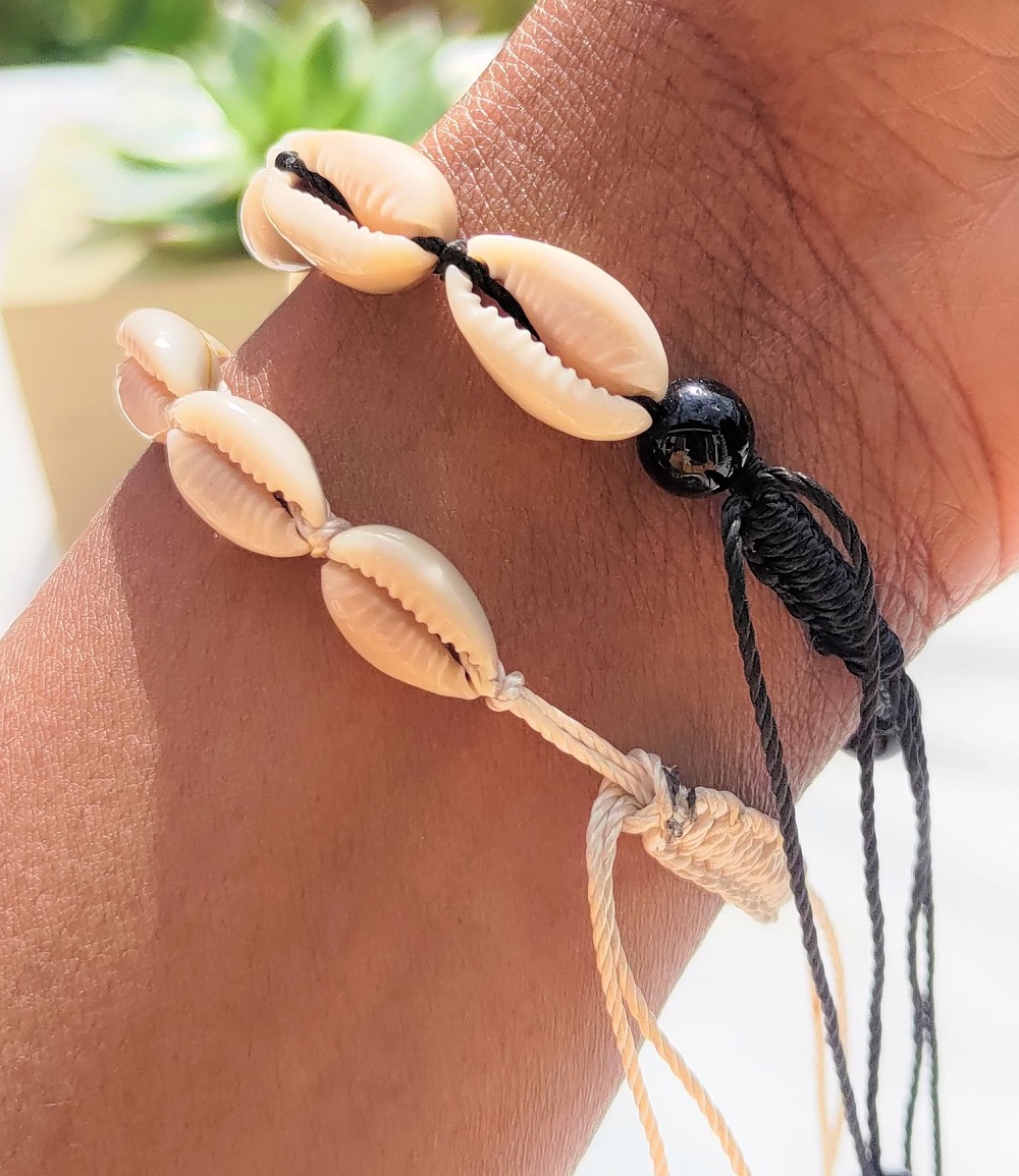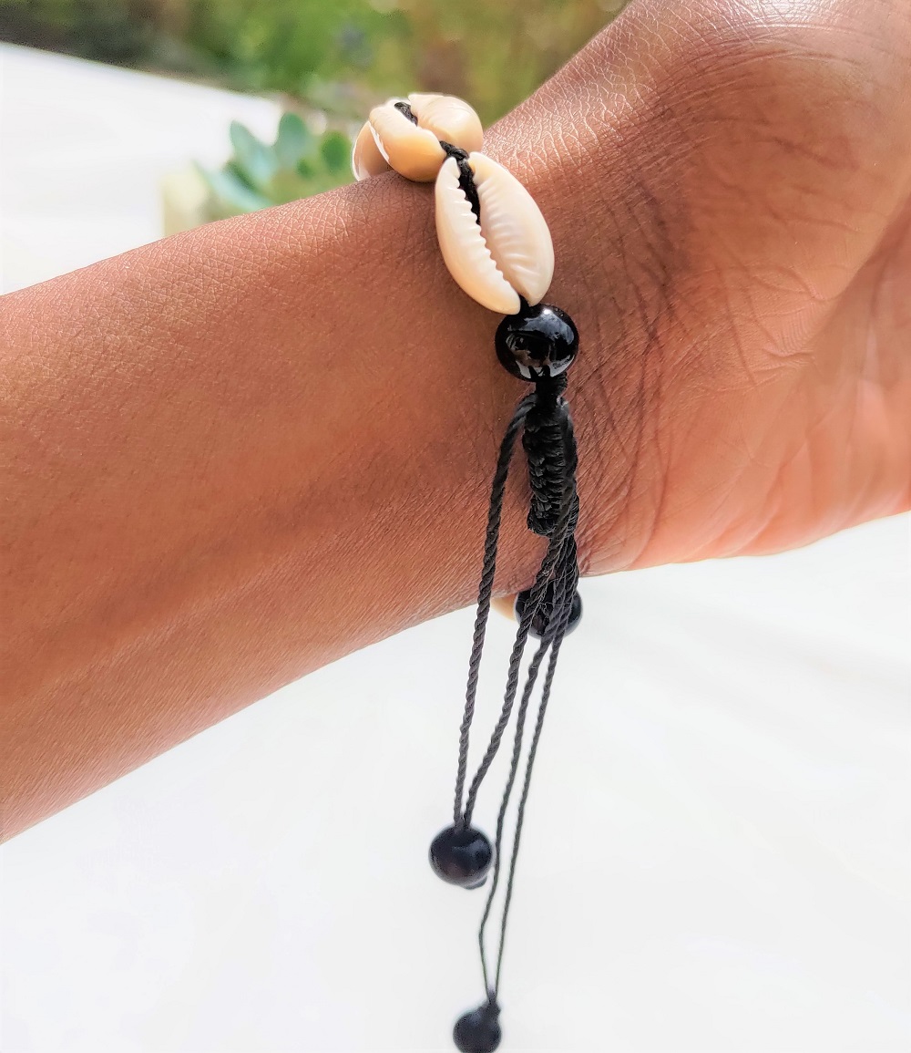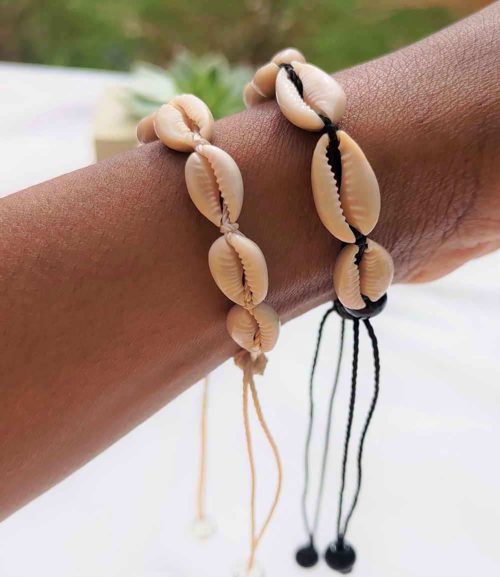 Nouveauté Kassaora!! Bracelet en cauris, réalisé à la main avec du fil à crochet pour une solidité absolue.