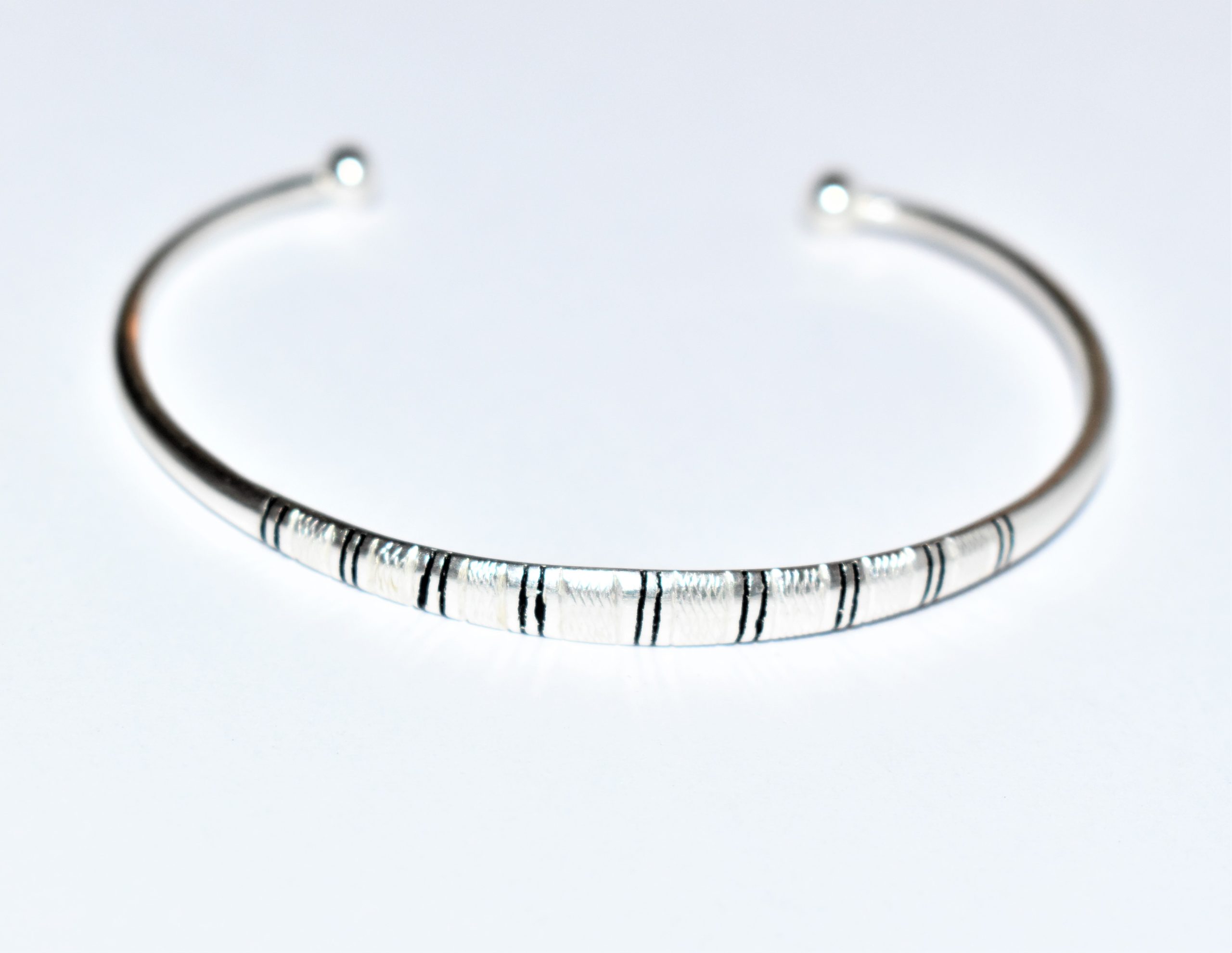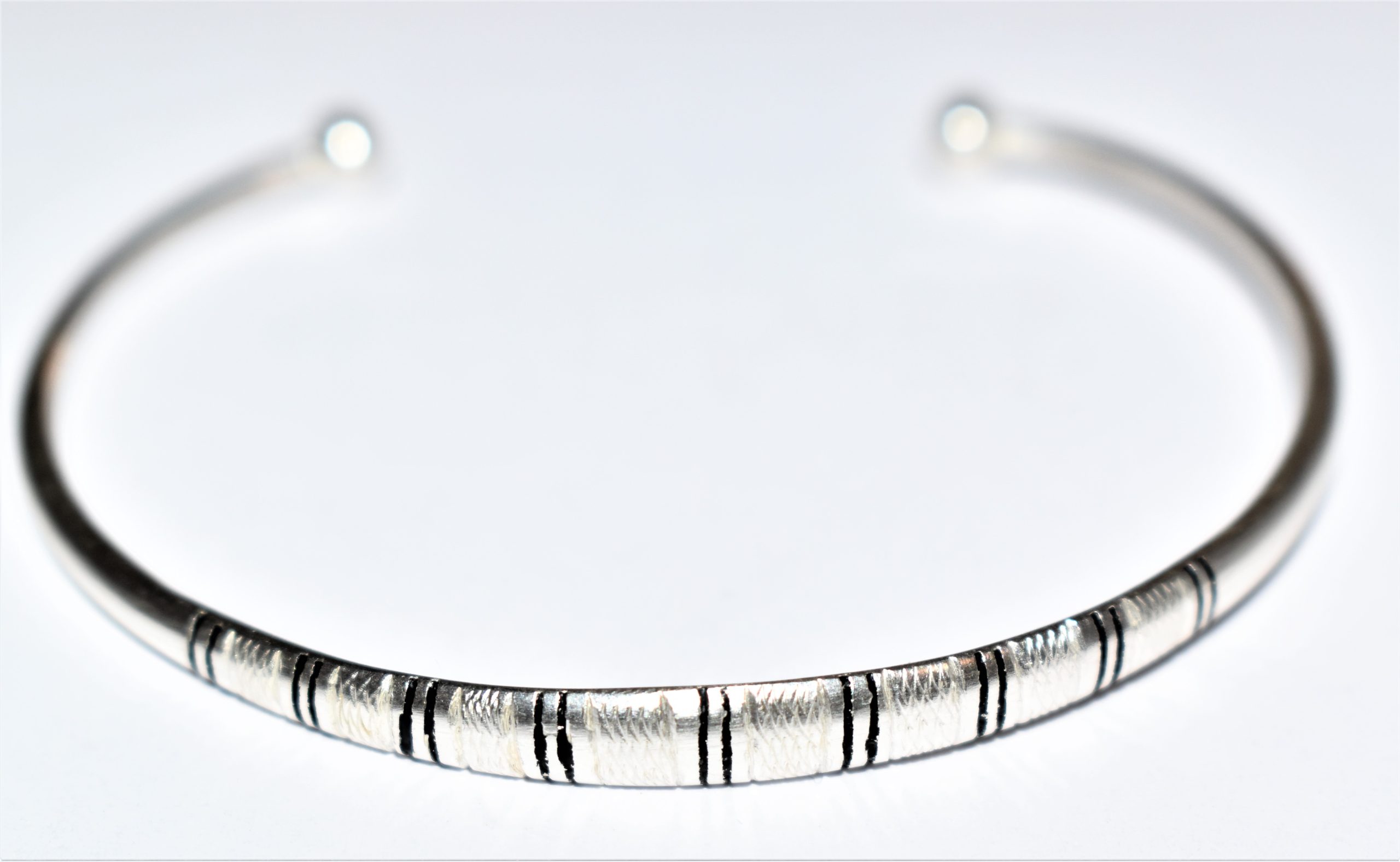 Bracelet jonc en argent massif, fin et raffiné, façonné à la main puis décoré à l’ébène