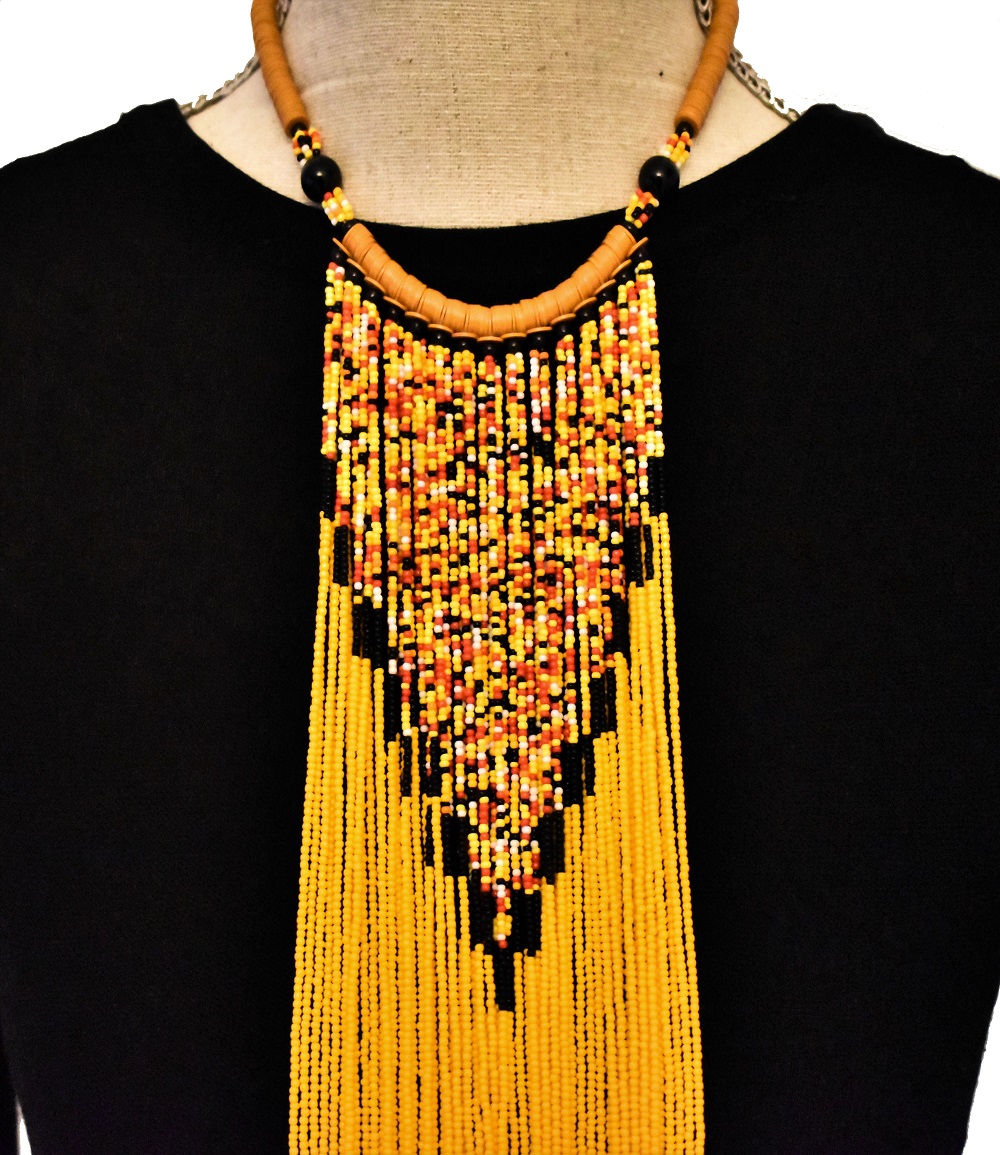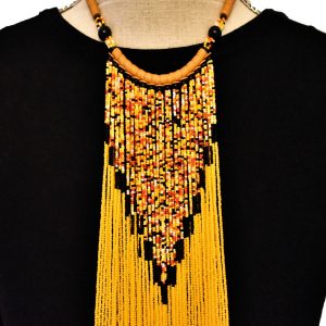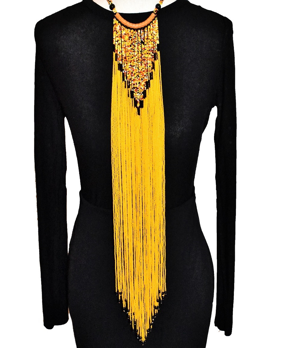 Collier à frange en perles fines façon cravate, entièrement confectionné à la main