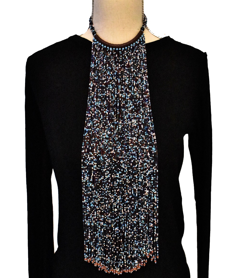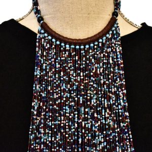 Collier à frange en perles fines façon cravate, entièrement confectionné à la main