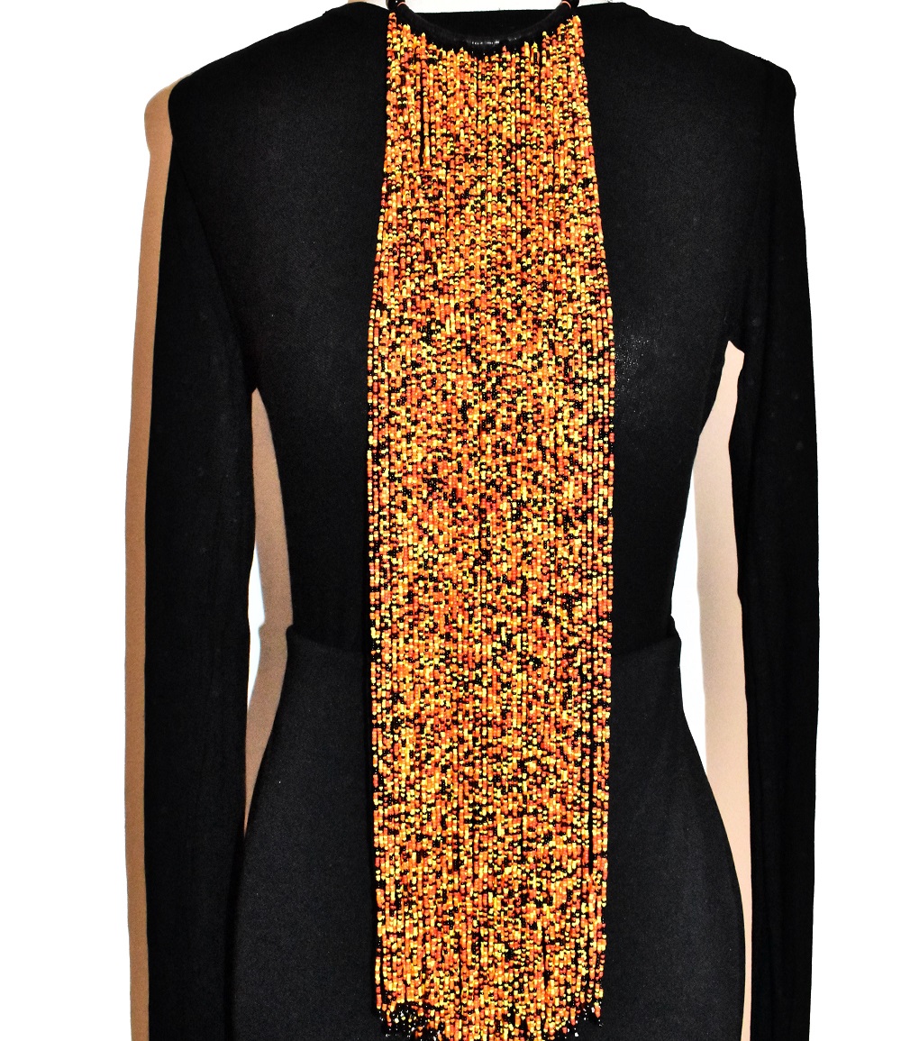 Collier à frange en perles fines façon cravate, entièrement confectionné à la main