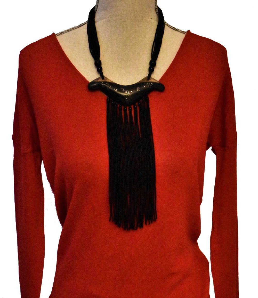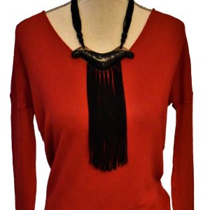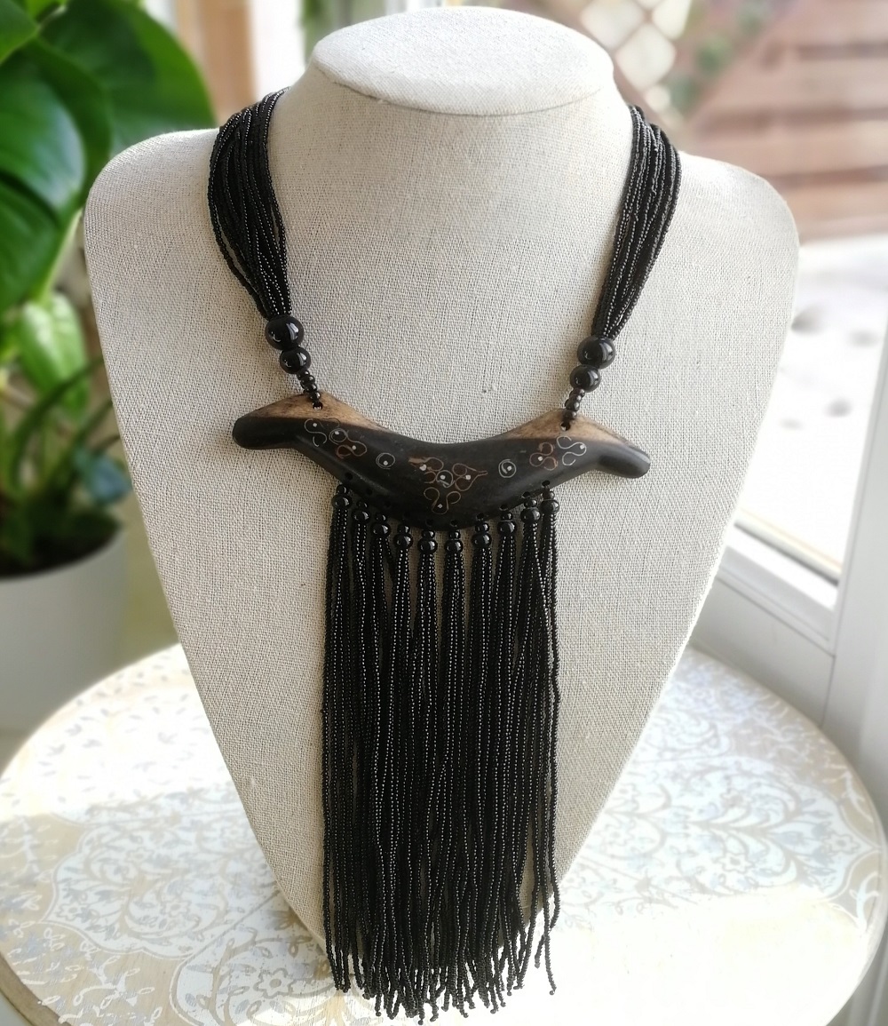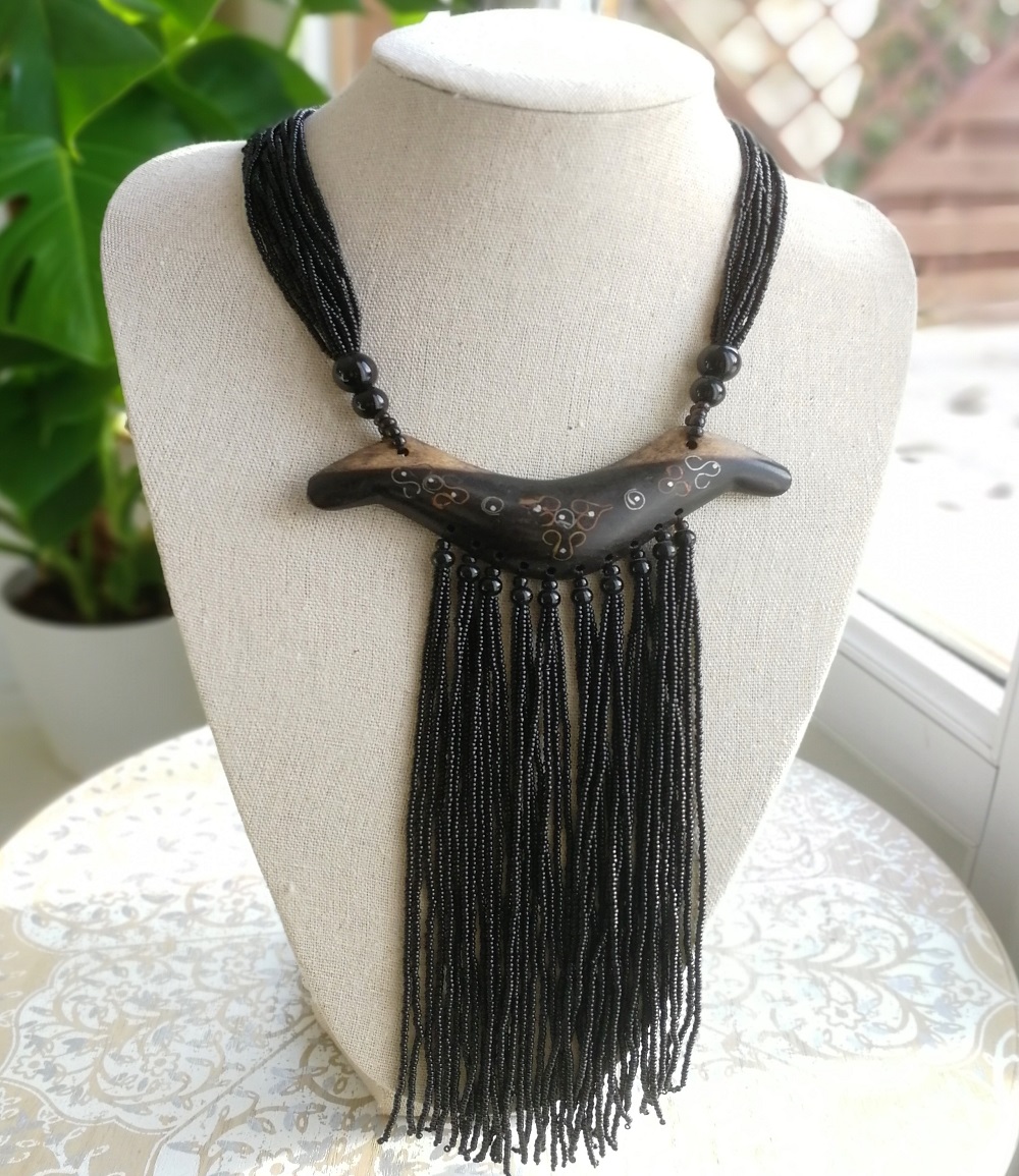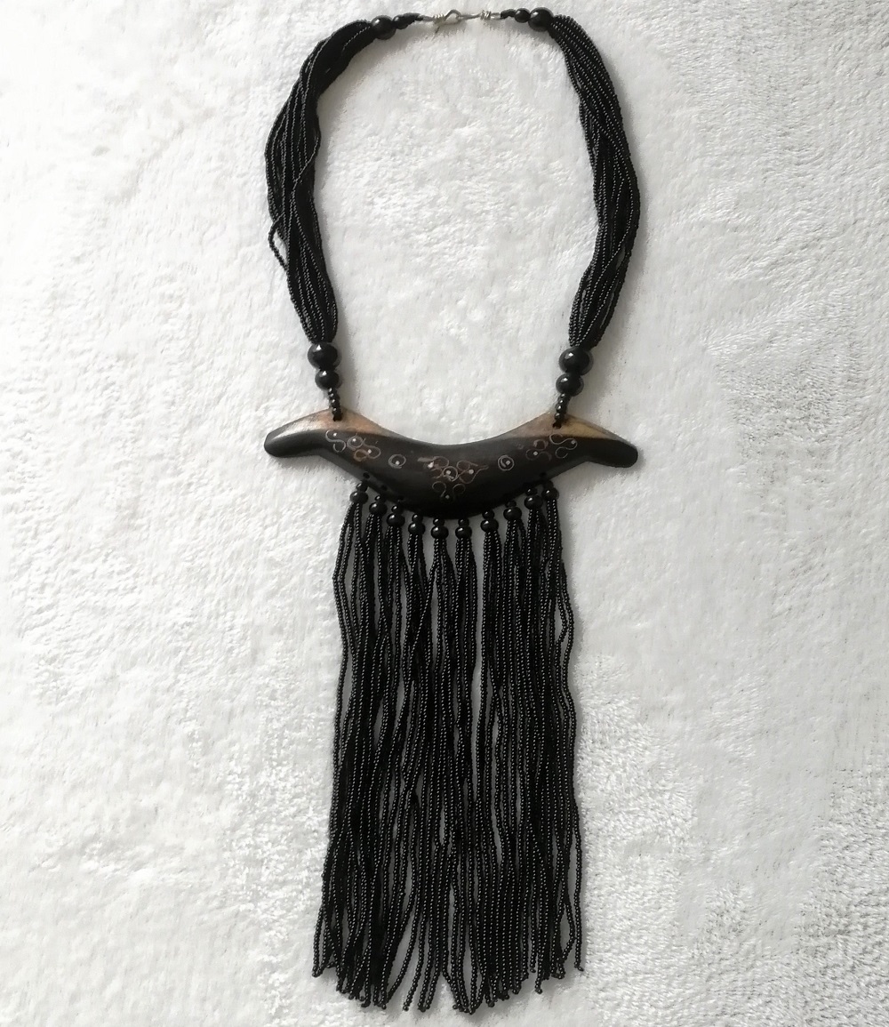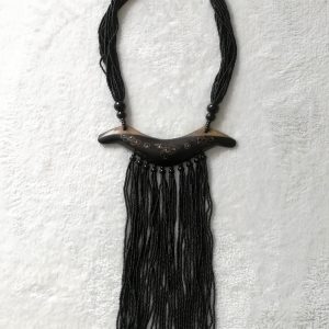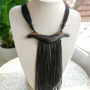 Collier en perles noires et bois d’ébène fait et décoré entièrement à la main