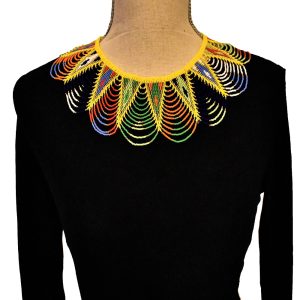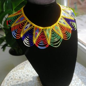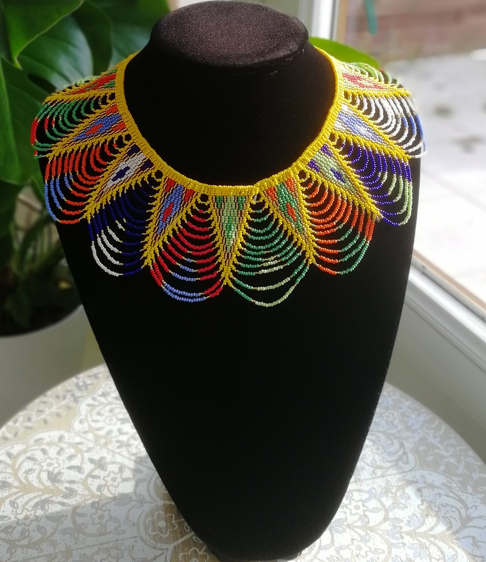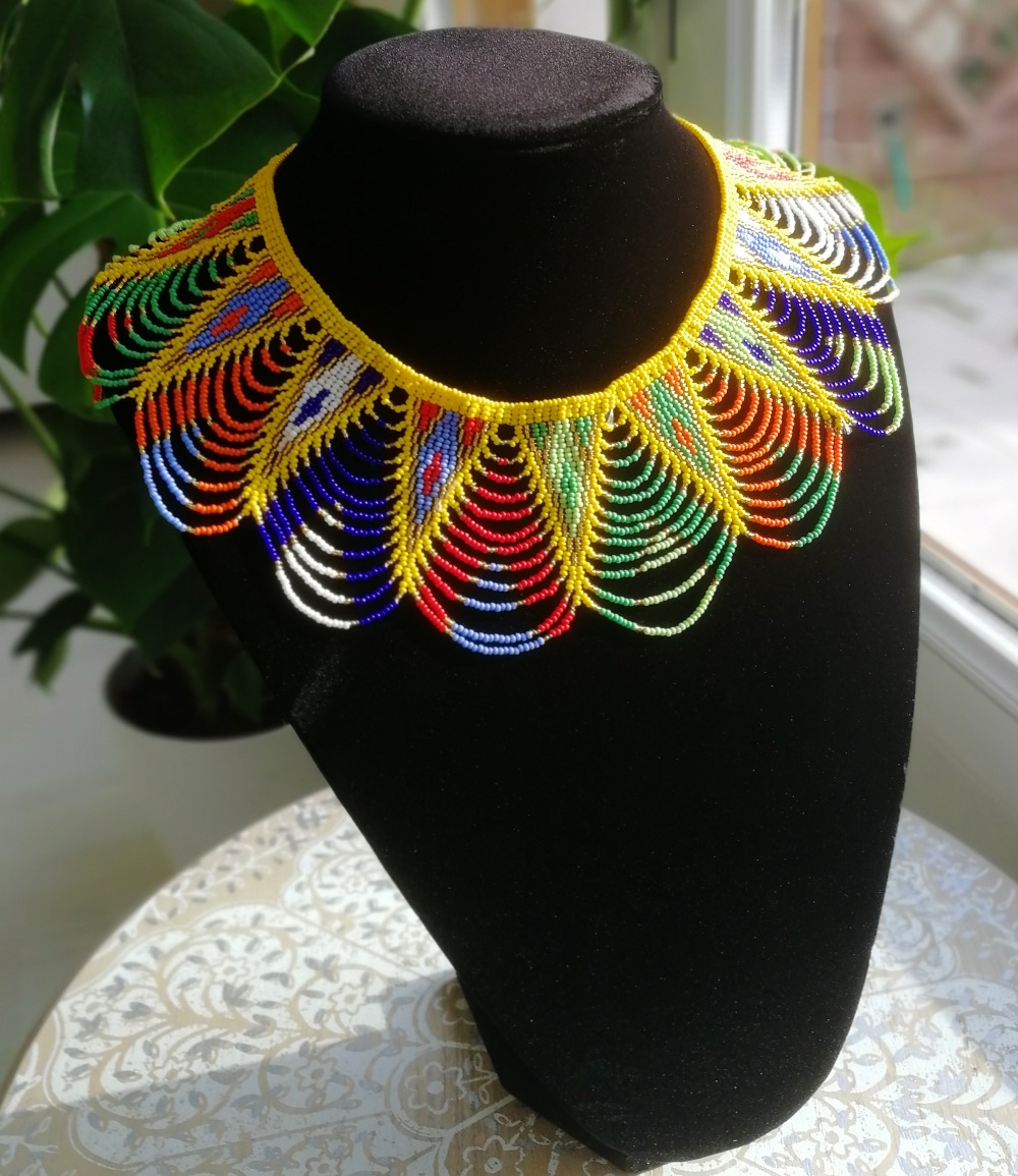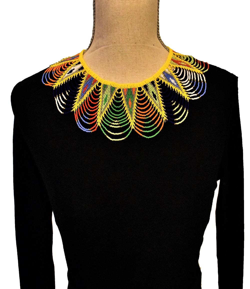 Collier Massaï tour de cou, tout en perles, confectionné entièrement à la main, système de fermoir en perles