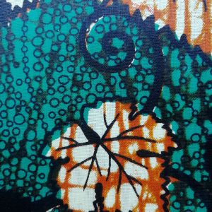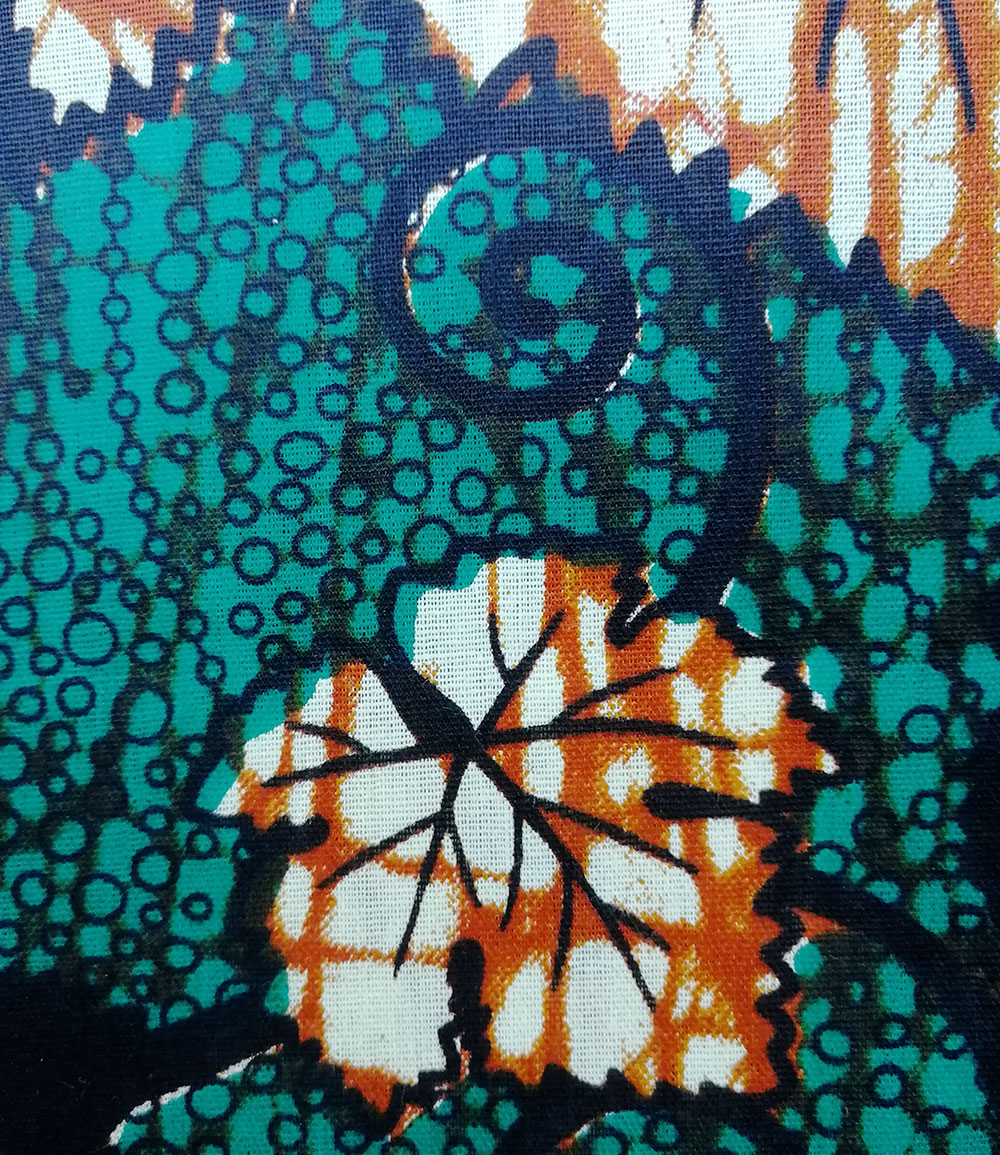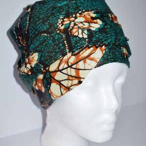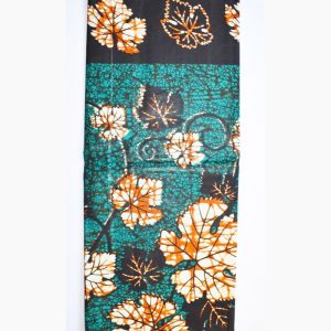 Foulard en wax, motif vert d’automne, couleur dominante vert avec surfilage vert sur les bords