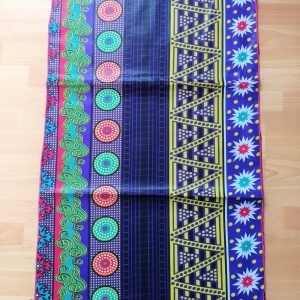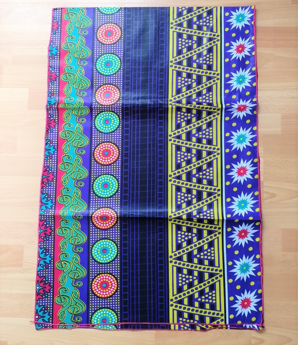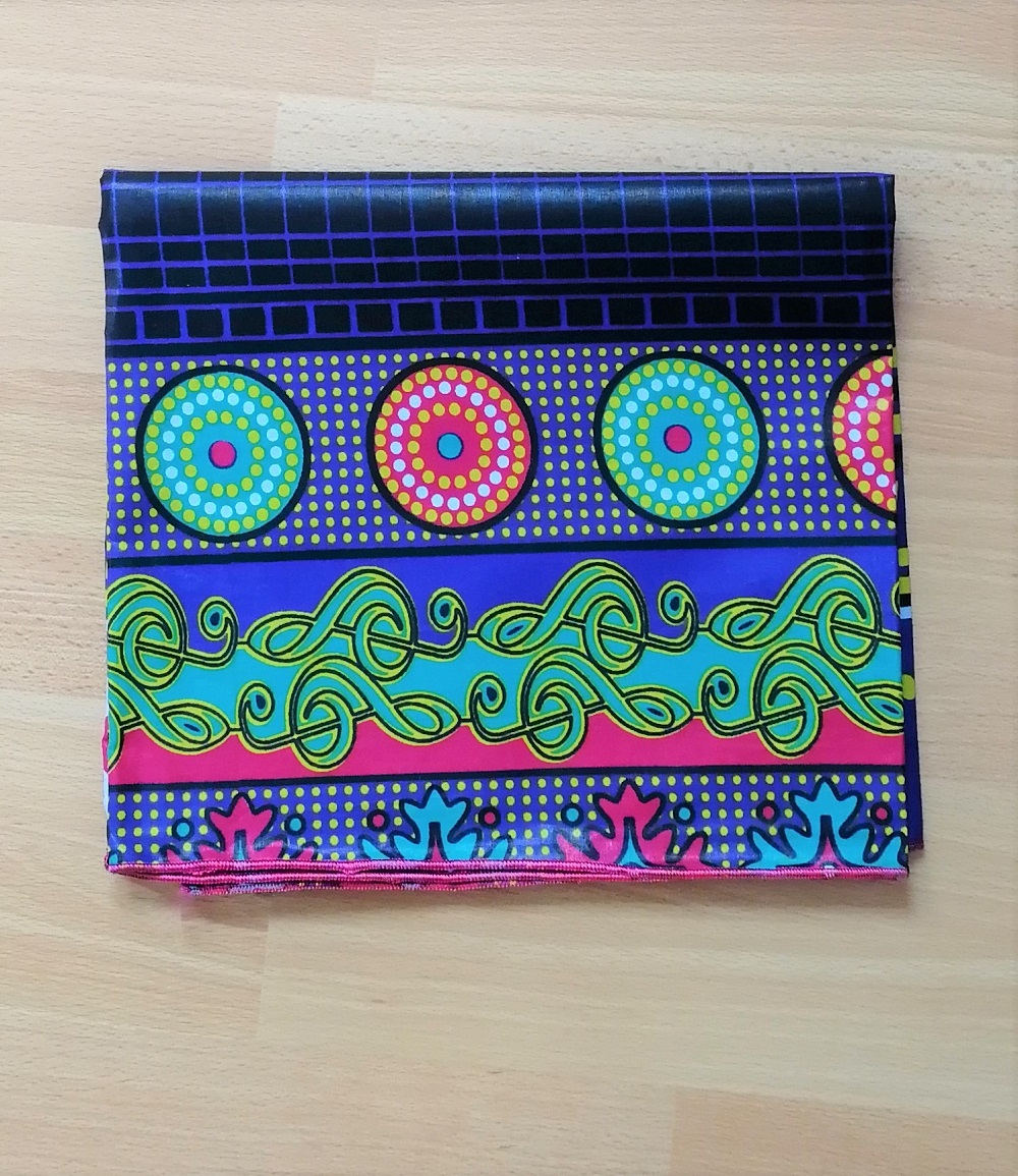 Foulard en wax, motif imprimé Digital, couleur dominante multicolore avec surfilage rose sur les bords