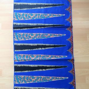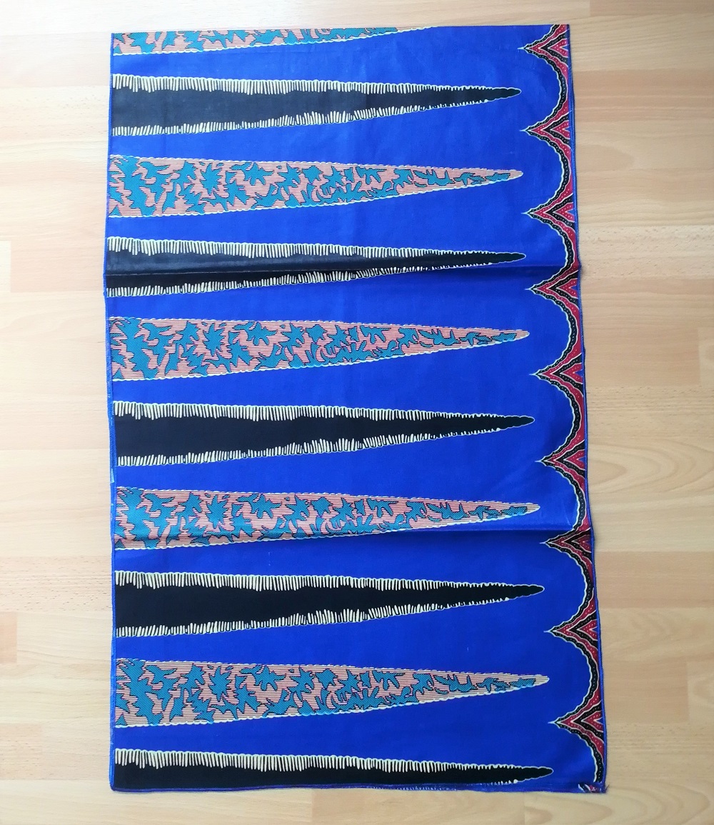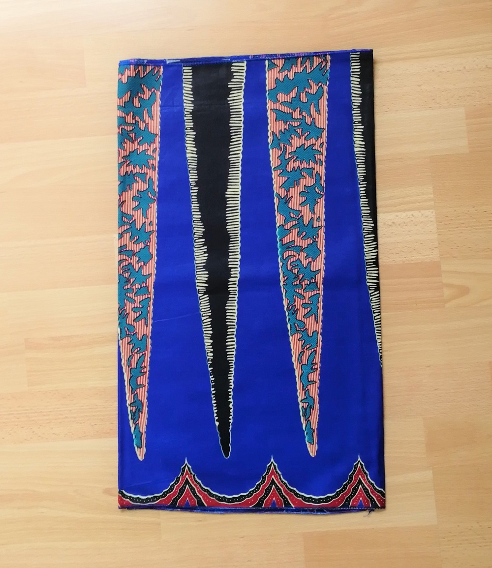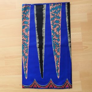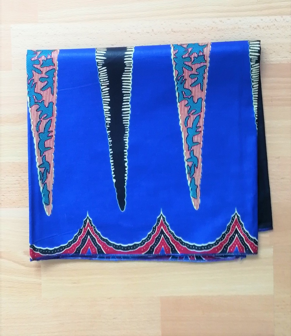 Foulard en wax, motif imprimé Racines bleutées, couleur dominante bleu avec surfilage bleu sur les bords