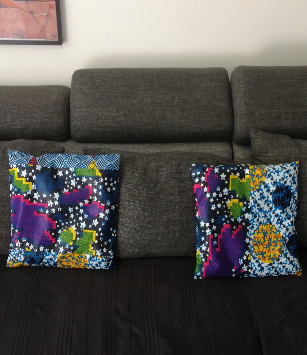 Housses de coussin en wax, motif formes aléatoires, vendues par paire (x2)